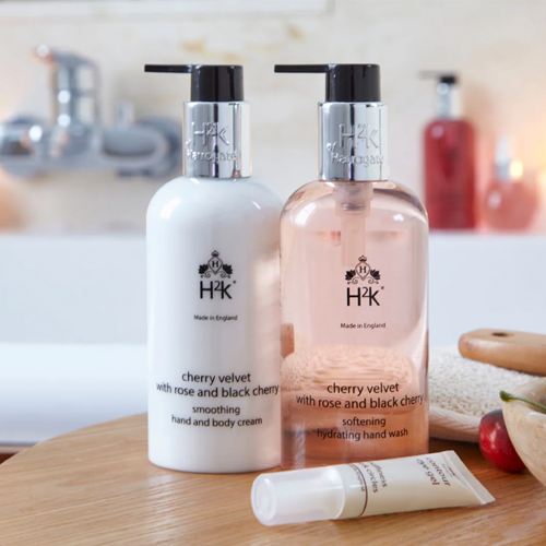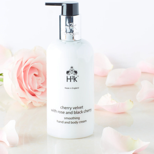 Cherry Velvet Hand & Body Lotion with shea butter, rose and black cherry extracts is delicately hydrating.   Black Cherry, chosen for its incredibly potent antioxidant, can help to defend the skin against environmental aggressors whilst calming inflammation.  When combined with rose and shea butter, creates a smooth and softening effect.