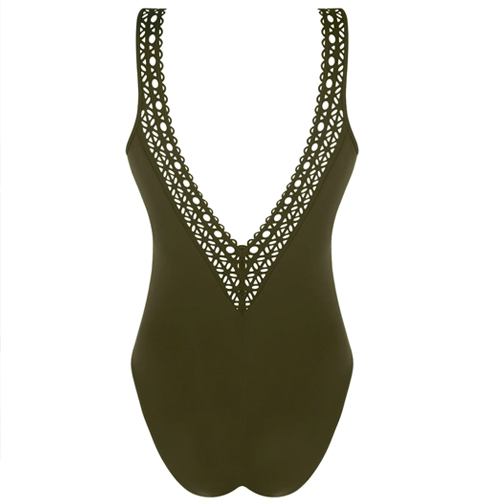 This is pure style and elegance a laser cut geo pattern on a deep v low back now in cup sizes so not halter but the straps are geo cup D & E cups available!